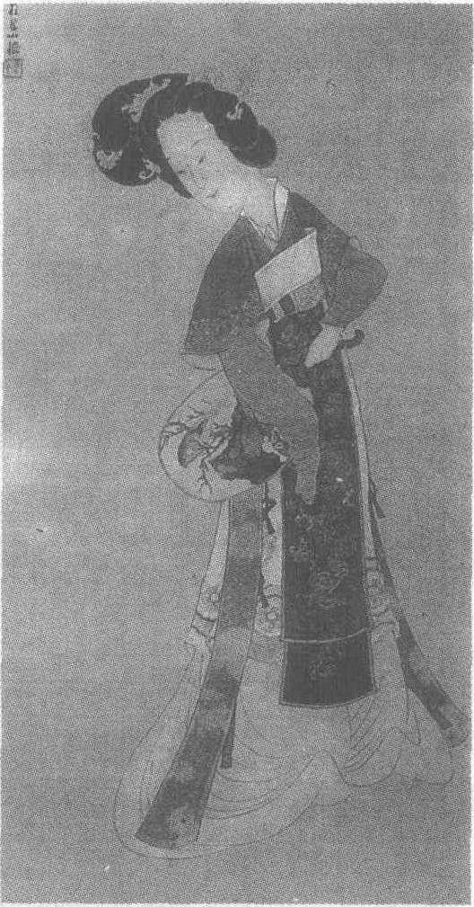 | 释义 | 任熊瑶宫秋扇图轴清。任熊(见《任熊姚燮诗意图册》条目)绘。绢本设色。纵85.2厘米,横33.5厘米。江苏省南京博物院藏。此幅工笔重彩描绘了一位宫装的女子,左手执鹦鹉纨扇,右臂微曲,似要提裾而行。衣纹线条细劲、流畅,笔法细腻,设色浓丽古雅而和谐。衣服上的纹饰、发髻及饰,以至纨扇上的鹦鹉、树石描绘都很细腻,衬托出人物的秀美与端庄,又不失古雅,清新活泼,有陈老莲之风,但在衣纹用笔及造型风格上又有自己的面貌。左上作者自署:“咸丰乙卯清明第三日,渭长能摹章侯本于碧山栖”,诗堂有李嘉福小楷录《瑶宫秋扇曲》,署年“乙卯”,为咸丰五年(公元1855年)。