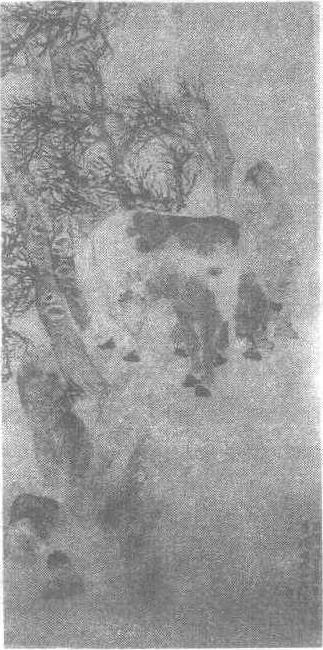 寒林牧马图 任伯年 任颐1840—1896清末画家。初名润,字小楼,后改字伯年。浙江山阴(今浙江绍兴)人。早年学画得到任熊、任薰指点,中年曾于上海卖画。所画题材极为广泛,擅长花鸟,重视写生,笔墨多变,构图新巧,色彩明丽,形象生动,富有诗情画意。所作人物画,寥寥数笔,自得神情,着墨不多而力有余,对传统人物画和花鸟画的发展有着一定的影响。代表作品有《女娲炼石图》等。 任颐1840—1896清末画家。字伯年,初名润,号次远,别号山阴道人,室号颐颐草堂。浙江山阴(今绍兴)人,后迁居上海。为书画世家,与其叔任熊、任薰、堂弟任预合称“四任”,形成上海派画家中坚,影响近代画坛,其女任霞亦为清末、民国初年有名女画家。任颐为人率直潇洒,不修边幅;人物、肖像、山水、花鸟无所不精,为全才型画家。尤精于传神写照,白描,写生,重精神刻画,造型准确,用笔多变,后得朱耷画册,悟其笔法;又进徐家汇图画院刘德斋学西洋素描画法,技艺益进。人物仿宋人双钩,赋色浓丽;山水疾起捉笔,淋漓尽致,气象万千。其画风趋于奔逸,形成雅俗共赏、明快温馨的写意格调,不愧为近代画坛巨匠。《三友图像》(纸本淡设色,藏故宫博物院)为其肖像画代表作。《承天夜游图》(纸本设色,藏中国美术馆)是以苏东坡名篇《记承天寺夜游》的意境,以画来抒写诗情的。《牡丹双鸡图》收入日本《支那名画宝鉴》;《宣和芭蕉图》、《人物册》收入《南国大成》;此外还有晚年作品《壮心不已图》、《墨笔人物山水册》等传世。 |