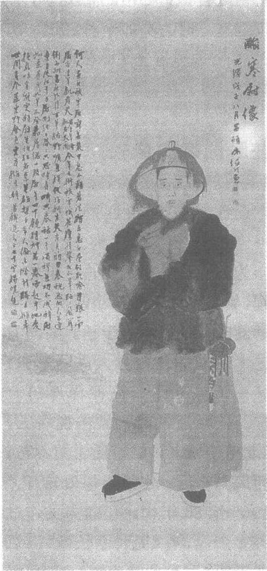 | 释义 | 任颐酸寒尉像轴清。任颐(见《任颐三友图轴》条目)绘。纸本设色。纵164.2厘米,横77.6厘米。浙江省博物馆藏。这是任伯年为吴昌硕所作数幅肖像中的一幅。吴昌硕比任伯年小四岁,中年学画时曾慕名求教于任。共同的艺术追求和对对方人品的尊敬,使两人建立了崇高而深厚的友谊。任颐逝世时,吴作挽联云:“北苑千秋人,汉石随泥同不朽;西风两行泪,水痕墨趣失知音。”19世纪80年代,任颐为吴作过许多画像,有《芜青亭长像》、《饥看天图》、《蕉荫纳凉图》等。此幅作于清光绪十四年(公元1888年),吴氏45岁,任氏48岁。画中人头戴红缨帽,身穿黄色长袍,外罩乌纱马褂,足登高底靴,双手交拱胸前,凝视前方,意态矜持,神态哂然,大有谑世之味。吴昌硕中年曾任安东县知县,一月即辞去。其自刻印曰:“弃官先彭泽令五十日”,每以“酸寒尉”自嘲。人物面部用浅细的墨线准确地勾出轮廓,并略加烘染,神采毕现,呼之欲出。在衣纹处理上,一反传统画法,将山水画的破墨法与花鸟画的没骨法相结合,以色代笔,直接用色墨挥写出衣饰,充分表现了任颐超众的艺术才华,也体现出他对传统笔墨的发展与创新和对笔墨技法的控制力与表现力。在色彩上,人物帽上红缨与腰间红色的饰物互相呼应,脚下的黑靴,又使之有了一种稳定感。画面左上方有杨岘题七言长歌,寓意深刻,耐人寻味。