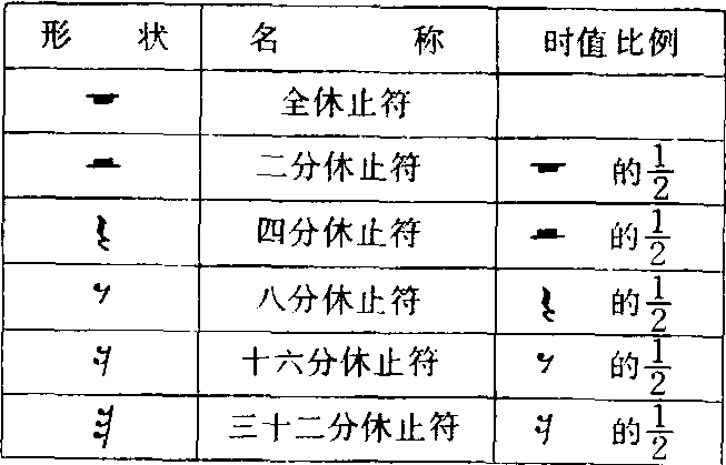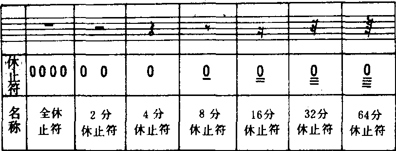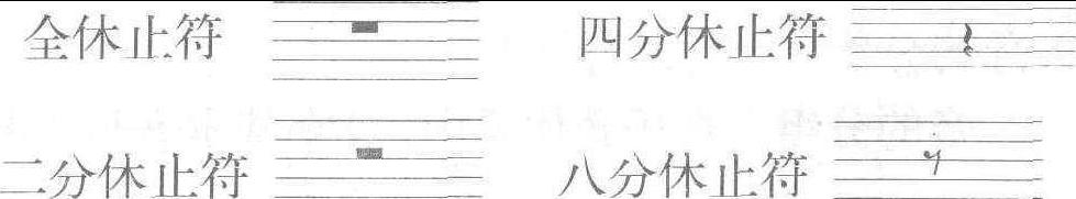 休止符Xiuzhifu乐谱中用以表示音乐间断时间长短的符号。五线谱中常用的几种休止符见下表: