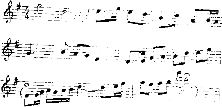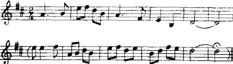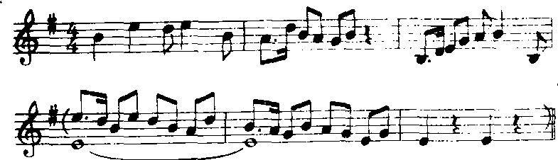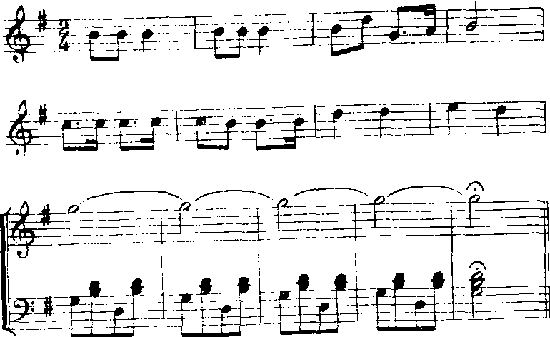 这些尾声还可以举出许多,尾声一定要和旋律在调式、风格、节奏、旋法方法的一致性,并要有收束感。 |