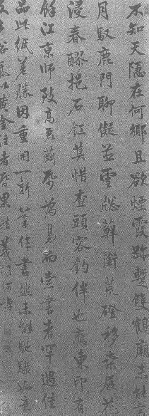 | 释义 | 何焯行书七言律诗轴清。纸本。纵116.7厘米,横43.8厘米。上海博物馆藏。何焯(清顺治十八年—康熙六十一年,即公元1661—1722年),初字润千,更字屺瞻,号义门、无勇,晚号茶仙、香案小吏。先世曾以义门旌,学者称其“义门先生”。长洲(今江苏苏州)人。为诸生时即负盛名,康熙年间以拔贡生直南书房,赐举人,康熙四十二年又复赐进士,授编修,直武英殿修书。博览群书,精通经史百家之学,长于考订,校勘石碑版最精,经他点勘过的书帖很受重视。工书法,喜晋唐法帖,宗欧、褚各家,尤爱作蝇头小楷,与姜宸英、汪士鋐、陈奕禧并称“四大书家”。清钱林《文献征存录》云:“楷法极工整,蝇头朱字,粲然盈帙,好事者得其手校本,不惜重价购之。”清梁巘《评书帖》指出其不足:“义门未得执笔法,结体虽古,而转折欠圆劲。”近人马宗霍《霋岳楼笔谈》云:“义门日事点勘,故小真行书不习而工,较之习而工者为雅,以其泽古既深,自有韵味也。”著有《义门题跋》、《行远集》、《义门读书记》等。 《清史列传》及《清史稿》卷四八四有传。此七言律诗:“不知天隐在何乡且欲烟霞迹蹔双鹤庙未能齐月驭鹿门柳儗并云窗藓衔荒磴移桑屐花浸春醪挹石釭莫惜查头容钓伴也应东印有余江。”旁注“京师致高丽茧纸为易而索书者罕遇佳品此纸差胜因重开一新笔作书然未能驰骤如意反多俗气以黄金注者昏果然义门何焯。”后钤朱文〈屺瞻〉、〈何焯之印〉等印。行书得欧阳询之意韵,笔法遒劲精熟,运笔从容豁达,字体舒和,劲骨挺拔,墨色温润,章法布局舒展洁雅,前三行秀谨端庄,后三行洒脱自然,整章字字独立,但血脉贯通,韵味十足。