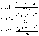 三角形任一边的平方等于其他两边平方的和减去这两边与它们夹角的余弦的积的两倍.即