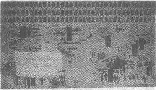 | 释义 | 佛教史迹壁画初唐。纵130厘米,横350厘米。甘肃省敦煌县莫高窟第323窟南壁中层壁画。根据此画的题榜可知此画描绘的是:西晋时有二石佛自河上浮来,巫祝、道教徒皆设案迎接。水面上风浪大作,惊惧而归。奉佛居士朱应设斋叩头礼拜,于是风平浪静,以船将佛像迎向通玄寺供奉。图中将以上情节一一绘入。在显著位置上绘一大船,有船夫在撑篙和摇橹,船上的僧人围绕着两尊大石佛,河岸两侧僧人跪迎石佛,有的恭敬而立,双手合十。更有普通百姓远途赶来观看,其中最为生动的是右下侧的一组:一着黄衫的壮年男子牵牛一头,牛背上骑一老妇手持供养鲜花,坐在后面的孙子一手揽住祖母的腰,侧身回首与跟在牛后步行的母亲说话,似在催她快行。妇人身背婴儿,手中亦捧供养鲜花。再后是一老者蹒跚而行,由于年老体衰有点落后。这个场面生动地反映了一家三代匆忙赶向河边观看石佛的情景,生活情趣浓厚。全图以山水为背景,透视关系表现合理。从内容上反映了佛教与道教等教派之间的矛盾。