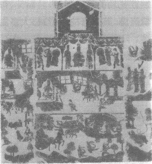 | 释义 | 佛本生故事石刻线画北齐。长126厘米,宽122厘米。河南省新乡市博物馆藏。此画是周荣祖造像碑正面及两侧面的石刻线画。正面构图分三层描绘佛祖释迦牟尼一生的重大事件。上层为前世佛——释迦未成佛前,在天宫中交脚而坐,默然沉思修行。其左右各立一侍者,立柱旁各有侍者和马。他们或单膝而跪,或垂立,似在等侯释迦吩咐;中、下层是释迦为净饭王国太子时乘车出游一路所见的描绘。左侧上部为太子乘迦楼逻(金翅鸟)翱游天际的情形;下部为其从天上投胎母体并出生肋下的情形;右侧上部为太子观舞图;下部为太子下棋图。此图沿袭了汉代画像石在减地平雕基础上以线刻绘人物衣装相貌的手法,将一幅幅场面刻绘得生动活泼,自然有神。