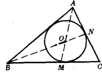 已知 △ABC.求作△ABC的内切圆.作法 ❶分别作∠A,∠B的平分线AM,BN,AM,BN交于O (如图).❷以O为圆心,点O到△ABC任意一边的距离为半径作圆.则⊙O就是所求的△ABC的内切圆.