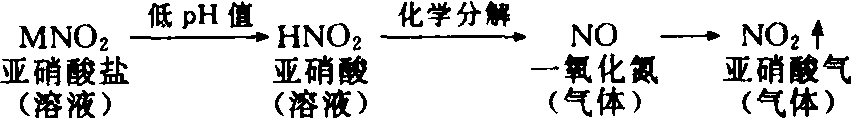 氨中毒 中性到碱性土壤,大量施用铵态氮肥或有机肥时,由其分解产生的氨在土壤中积滞,遇强光照射温度急剧上升时,氨气化逸出;或者在使用铵态氮肥之后,施用石灰质或碱性肥料,产生气体氨。氨经气孔进入植物,杀伤细胞,严重时,被害叶片发黑而凋萎。 诊断 大棚栽培气体中毒的诊断可以在早晨换气之前检测附着于棚顶薄膜上露滴的pH值。在多数情况下,氨气、亚硝酸气同时存在,故应多点采样,以确定何种气体为主。判断标准见表。此法也可作检测措施,相隔一定时间测定一次以作预报;另外,口尝露滴味觉也有助于判断,舌舔露滴,有滑溜感为氨,如味涩则为亚硝酸。 防治 严格控制氮肥用量,一旦发生危害,则采取棚屋换气,充分灌水淋洗。对亚硝酸气中毒的,要及时用石灰矫正土壤酸性,也可施用亚硝化细菌抑制剂。 根据露滴pH值判断气体中毒
