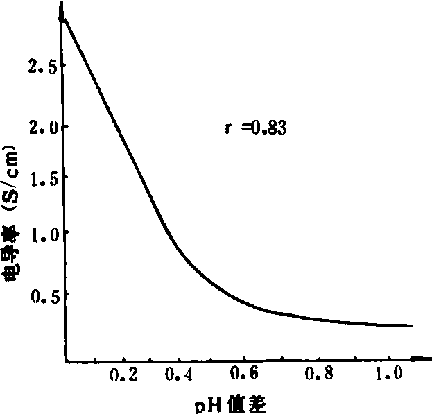 2O)值和pH(KCl)值及电导率,绘制pH值差值与电导率的相关曲线(如图2)。需要检测某一土壤时,只需测定它的pH(H