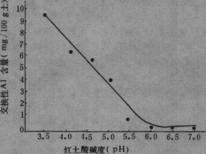 图2 红土中pH值与交换性Al的关系 铝毒防治 施用石灰、含钙(CaO)炉渣等,提高土壤pH值,沉淀活性铝。施用厩肥,其分解产物有机酸能络合铝,缓和或消除铝毒。施用草木灰、钙镁磷肥、钢渣磷肥等,作穴施、条施时,局部调节根域土壤pH值,以及不用生理酸性肥料都能见效。选育耐铝性品种,以作物去适应土壤要比改良土壤来适应作物更为理想。由于铝毒对幼根伤害显著,为筛选带来方便,使大量原始材料发芽后,用一定浓度铝溶液处理,根据幼根伸展情况选优汰劣。 |