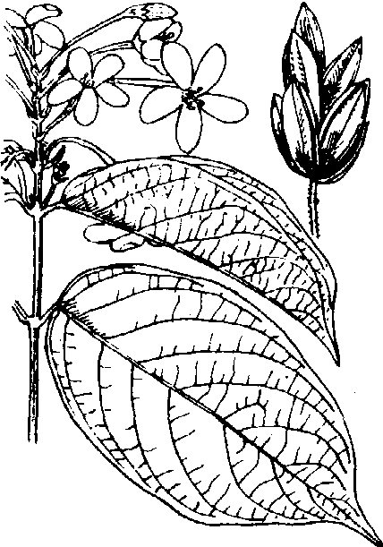 使君子rangooncreeperQuisqualis indica L.,使君子科,使君子属。落叶攀援状灌木。分布于中国福建、江西南部、湖南、广东、广西、四川、云南、贵州及台湾等省区;印度、缅甸和菲律宾也有分布。小枝有黄褐色绒毛。单叶膜质,对生,卵形或长椭圆形,全缘,先端短渐尖,基部钝圆,表面常密被锈色短柔毛。穗状花序;花两性芳香;花萼管细长,5齿裂;花瓣5枚,白色至淡红色;雄蕊10枚,2轮;子房下位1室,有纵棱。果呈橄榄状,有明显的5棱角,青黑色或栗色。种子白色。果为中药“使君子”;种子健脾胃,除虚热,为良效的驱蛔虫药,治小儿疳积及寄生蛔虫症。种子含油16.5%。