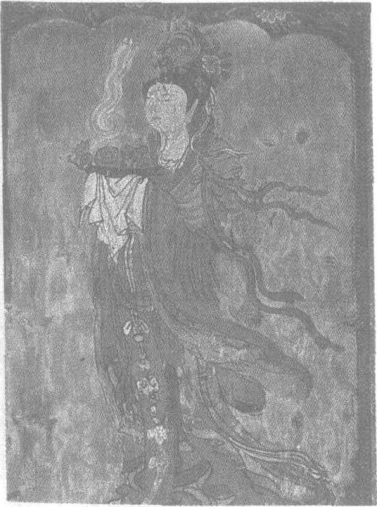 | 释义 | 供养天女像壁画辽。纵120厘米,横90厘米。山西省应县佛宫寺释迦塔底层内槽门楣东格外侧壁画。佛宫寺释迦塔建于辽清宁二年(公元1056年),平面呈八角形,五层六檐,是国内现存最古老最高大的木塔。头层内槽壁面有六尊如来画像,南北门两侧分绘四天王像,门栏上绘供养像六身,此为其中之一。供养天女头梳高髻,花冠和头钗鲜艳夺目。面型丰满,弯眉细眼,樱桃小口。身穿宽大的长裙,红衣配绿边,衣裙虽掩盖了她的身姿,但帔帛与阔袖口随风向身后飞舞,使人物具有动人的形态。她手捧一只垫有白巾的托盘,内置珊瑚。此幅壁画运笔自如,人物姿态优美,神情平和专注,是一件优秀之作。