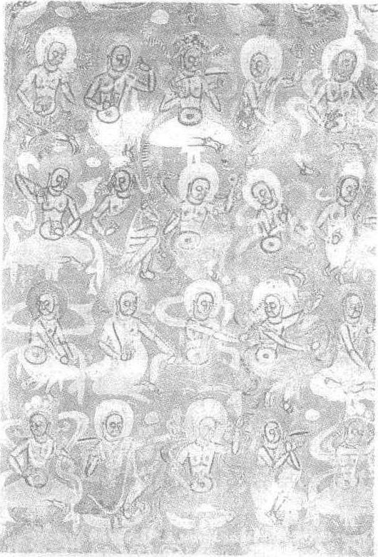 | 释义 | 供养菩萨壁画北凉。纵135厘米,横95厘米。甘肃省敦煌县莫高窟第272窟西壁龛南侧壁画。供养菩萨共20身,分作四组。她们身姿婀娜,具有不同的动感,手姿各异无雷同,造型十分优美,补偿了面部勾画简单的不足。浓艳的色彩将画面烘托得十分热烈。