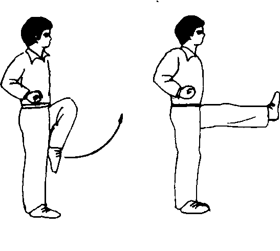 腿法之一。又称踹腿或侧踹腿。为屈伸性腿法。要求支撑腿直立或稍屈,另一腿勾脚尖以脚根为力点, 由屈到伸的踹击动作。