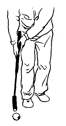 | 释义 | 侧面击球是国际通用的一种击球方法。国际门球比赛规则规定“不得跨越击打球的方向线”。这样正面跨打的击球方法则不符合国际门球比赛规则的要求,所以必须采用侧打法。侧打法有2种:一是日本式侧打。日本式侧打的姿势与高尔夫球打法相似,即身体侧对击出球方向,两脚开立大约与肩同宽,球在体前20厘米左右(因人而异)与两脚成等腰三角形。上体前倾,一般用正反握杆法握杆,槌端面对准球的后中部瞄准。然后将杆提起2~3厘米向击球方向撤出20厘米左右,再回摆用槌头端面击球的后中部偏上部位,使球沿击球方向线滚动撞击他球或停止在预定位置。另种是中国式侧打(图2—3—55)。其动作是左(右)手在上,右(左)手在下用侧握杆法握杆,击球人面对击球方向,站在球的侧后面10~20厘米处,两膝弯曲,上体前倾,身体重心落在右(左)脚上,两眼注视球。击球时先将杆提起2~3厘米,向后撤用槌头端面对准击球目标,再向前摆动击打球的后中部偏上部位,使球沿击球方向线滚动撞击他球或停止于预定的位置。