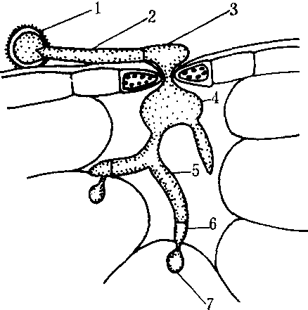 伤口侵入 机械损伤、虫伤、冻伤、日灼伤或因农事操作、嫁接等造成的伤口都可成为病原物侵入的有效途径。病原物从伤口侵入大致有二种类型: ❶寄生能力较强的真菌只是以伤口作为侵入的通道,无需从伤口补充营养。 ❷寄生能力较弱的病原物必需利用伤口的养分,进行繁殖,然后侵害。棉田土壤中的根腐线虫对棉根的为害,造成虫伤为枯萎病菌的侵入打开了通道。病毒、类菌原体、类细菌等常依赖介体昆虫在取食时或摩擦接种造成轻微伤口作为侵入途径。只有进入活的细胞才能与寄主建立寄生关系。有些病毒通过嫁接传染,这类病原物没有主动侵入的能力,完全依赖传播介体或机械创伤才能侵入。伤口的新鲜度直接影响病原物侵入的成功率。新鲜的伤口,对病毒和细菌的侵入十分有利。陈旧的伤口,病菌难以侵入,如水稻叶片上新造成(5分钟以内)的伤口,最适合稻白叶枯病菌的侵入,成功率可达100%,一小时以上的伤口,侵入率在20%以下。 影响侵入因素 病原物能否成功地侵入寄主,一方面与病原菌自身的特性(如接种体的活力、数量、寄主植物的敏感状态、感病期、感病器官)有关,同时受到环境因素,主要是湿度、温度、光照等因素的影响。在流行学上,一般用“侵染概率”表示侵染的成功率,用侵入概率表示成功的入侵率。 湿度 湿度高低和维持时间长短是影响病原物侵入的主要因素,多数病原物要求高湿条件才能侵入成功,而高湿度维持时间长短直接影响侵入率。如植物表面水膜(滴)保持的时间短,只有少量萌发快速的真菌孢子得以侵入,例如,小麦杆锈病菌夏孢子侵入寄主最快只需2~3小时的高湿度; 保湿时间延长,侵入率增加。保湿时间的长短,直接影响侵染率的高低。台风暴雨,常导致细菌病害的暴发流行。 温度 主要影响病原物侵入速度。如温度不仅影响真菌孢子的萌发速率,而且影响芽管的生长和侵入速率。大多数病原物休眠机构或接种体萌发的最适温度与侵入寄主的最适温度是一致的。在最适温度范围内,病原物侵入时间最短,超过这一范围侵入时间延长,超过病原菌侵入所需最高或最低温度,病原物就不能侵入。例如小麦条锈菌侵入的最适温度为9—13℃,最高为22℃,最低为1.4℃,而小麦杆锈菌的最适侵染温度为18~22℃,最高为31℃,最低为3℃,表明病原菌种类不同,侵入所要求的温度有很大差异。 寄主植物 病原物能否侵入成功,与寄主植物自身的特性密切相关,如寄主的表皮结构,气孔数目及开闭的功能,伤口愈合的能力和速度,以及寄主与病原物相互作用所诱发的生理生化过程等,都影响病原物的侵入。寄主植物或诱发植物根部或叶部常有分泌物释放,这些分泌物大多具有刺激病原物萌发,生长、繁殖的功效,少数则具有抑制和毒害微生物生长繁殖的功能。 病原物的特性 不同种类病原物侵入寄主植物所需时间和数量不同,病原物对寄主的亲和程度,病原物接种体的活力和成熟度以及接种体的数量等都直接影响侵入。病原物成功侵入寄主所需的接种体数量即“侵染剂量”(infection dosage)有较大差异。有些真菌,如小麦锈菌、单个夏孢子接种就能发病。而许多病原物则需要较大数量的接种体群体才能完成侵入,如小麦赤霉菌,要求每毫升孢子悬浮液中至少含有1万个孢子才能保证侵入发病; 而植物病原细菌一般需用每毫升含104~105个细菌的悬浮液接种才能发病;烟草花叶病毒则需要有104~105个病毒粒子接种,才能在心叶烟上产生一个局部枯斑。 |