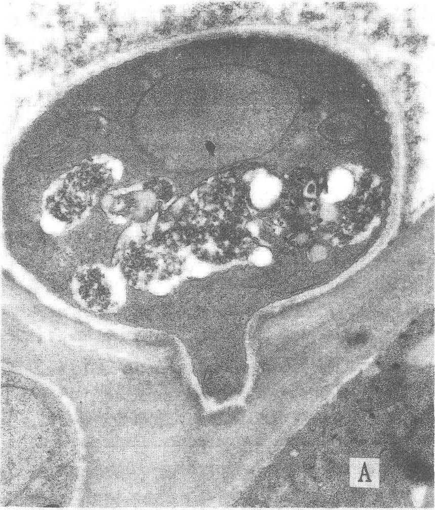 A.马铃薯炭腐菌(Macrophomina phaseolina)侵入丝正穿过细胞壁 B.甘蓝根肿病菌(Plasmodiophora brassicae)芽管从根毛直接侵入后进入细胞