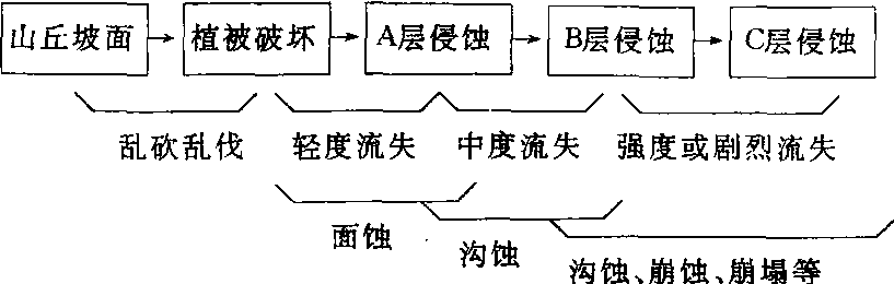 土壤侵蚀发生过程用框图表示的模式。具体模式如下: