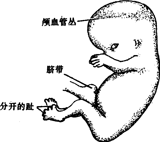 | 释义 | 3月胎可分男女此期生长迅速,长度几乎增加一倍(坐高约55毫米)。头仍大,占胚全长的1/3。脸是宽的,鼻梁出现。眼睑已融合。额及眼眉区开始出现胎毛。乳晕出现,上、下肢发育成形,手指甲出现。外生殖器官已分化,可区分性别。此期胎儿对刺激开始有反应,只是运动极小,母亲感觉不到。手指有紧握反射,前臂及腿可作轻微动作。从流产胎儿观察到,如打击唇部可引起胎儿吸吮反应。如打击眼睑也可有反射性反应。脊髓的内部结构形成,并显示出颈膨大和腰膨大,马尾和终丝出现,各型神经胶质开始分化。虹膜、睫状体形成,视网膜逐渐分层。内耳螺旋器在分化中。骨髓开始造血,胸导管和外周淋巴管已发育,早期淋巴结出现,血中无核红细胞明显。心壁内可认出房室结与房室束,及与其相连的普肯野氏纤维。肾已能初步看出皮质及髓质区,并开始分泌尿液,膀胱扩展成囊。与性别相反的生殖管道退化。男性胎儿睾丸、附睾、输精管、前列腺、精囊、尿道球腺已出现,腹膜鞘状突在形成中。女性生殖管道在分化中。大部分骨骼已具骨化中心,开始骨化为硬骨。鼻中隔和腭完全融合。舌乳头开始高起,唇和颌分离,牙釉器官和牙乳头形成。扁桃体陷窝开始凹陷。胸腺髓质形成并有淋巴细胞及胸腺小体形成。甲状腺具有典型的构造,开始有胶体蓄积。第10周时肠袢从脐腔缩回到腹腔,小肠绒毛形成,肠壁的肌层出现,肛管形成。胰腺内腺泡和胰岛出现。胆汁开始分泌。喉腔重新打开,声皱襞出现,肺已达到最终的形状。