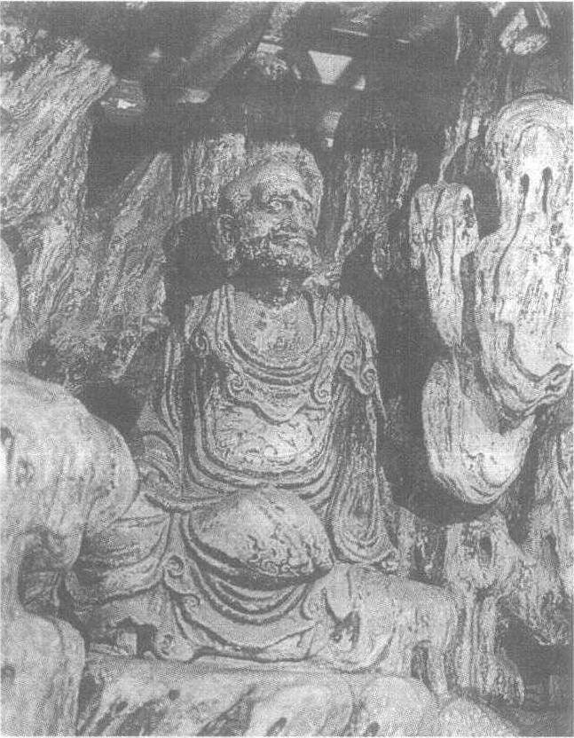 保圣寺罗汉像 罗汉是佛教艺术经常表现的题材,不过传到中国也逐渐走了样。唐末张玄和贯休两和尚画十六罗汉增加了《法住记》作者庆友为第十七,重复第 一罗汉宾头罗尊者为第十八。从此以后,十八罗汉在寺庙壁画、雕塑中经常出现,不过十七、十八两尊经常交换,或增达摩多罗和布袋和尚,或增降龙、伏虎等等,无 一定制。罗汉像的演变,发展,说明了佛教的彻底中国化。 这件罗汉是江苏吴县用直镇保圣寺影壁上的一尊。保圣寺始建于南朝梁天监二年(503年),后经历代重修,寺内保存十八尊罗汉塑像。1927年,保圣寺遭火灾,大殿半壁坍塌,塑像受损。后来,蔡元培、顾颉刚等筹建古物馆,将残存的九尊造像移入馆内陈列。塑像附于塑壁之上,与山石、云气融于一体。据考证,这尊罗汉为十八罗汉的第十二尊者,俗称降龙罗汉。塑像高140厘米,端坐如钟,直身仰头,眉头紧蹙,目光威严,确有降龙之神威。 保圣寺彩壁传为唐代著名雕塑家杨惠之所塑,对此后世多有歧义,但都承认这批造像为宋代高手所做,继承了前代造像形神兼备的优良传统,是不可多得的宋代泥塑精品。 |