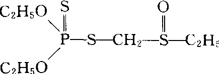 | 释义 | 保棉丰phorate又称甲拌磷、三九一一亚砜。高毒有机磷杀虫剂。是甲拌磷的一种氧化物。化学名称:O,O-二乙基S-(乙基亚硫酰基甲基)二硫代磷酸酯。化学结构式如下。工业品为黄色或棕色油状液体,有强烈大蒜臭味,略溶于水,易溶于苯、二甲苯、丙酮等有机溶剂。在碱性液中易分解失效,对害虫和害螨具有强烈的触杀和内吸胃毒作用。内吸活性低于甲拌磷,药效期短于甲拌磷。可防治对有机磷产生抗药性的蚜虫和螨类。大鼠急性口服LD50为6.7 mg/kg,急性经皮LD50为65 mg/kg。