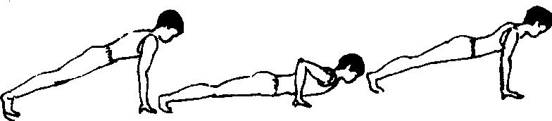 适用于5—6年级。可以发展学生胸肩部肌肉的力量。器材 秒表1块。场地 室内外空地。游戏方法 将学生分成人数相等的若干组。预备时,学生手撑地,上体和臀部及腿成一直线,前脚尖着地。教师发出开始口令后(并开始记时),学生立即屈臂做俯卧撑,以30秒为单位,可做2—3次,然后把各组累积数字统计出来,以数高者为胜,也可在规定时间里进行个人比赛。