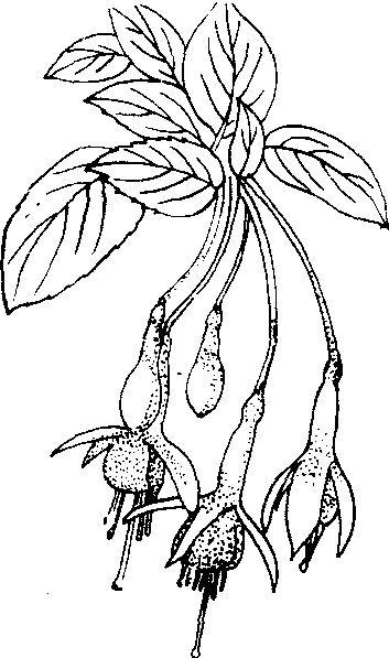 繁殖与栽培 主要用扦插繁殖,除休眠期外均可进行。一般于1~2月及10月份扦插。剪取长5~8cm生长充实的顶梢作插穗,随剪随插,适宜扦插温度为15~20℃,约20天生根,及时分栽上盆。一些易结实的种类(需人工授粉)可用播种法繁殖,春、秋季在温室盆播,约15天发芽,翌年开花。 小苗上盆恢复生长后摘心,待分枝长到3~4节后再次摘心,每株保留5~7个分枝。在生长适宜季节,摘心后14~21天开花。通常在初夏花后重剪,秋凉进温室时再修整株形,也可作树状整形,使其成为由匀称的3~5个分枝组成的树冠。生长期间7~14天施液肥一次。趋光性较强,要经常转盆。炎热多雨地区,夏季要注意通风、降温,置荫棚下,保持盆土高燥,安全越夏。休眠植株,可不浇水施肥。8月下旬至9月上旬天气凉爽时,应逐渐加强水肥管理。 园林应用 由于花色艳丽,花形奇特,花期较长,常作盆花观赏或室内悬吊观赏,也可作切花。夏季高海拔凉爽地区可地栽布置花坛。 同属植物约有100种,常见栽培的种有:❶白萼倒挂金钟(F.×albacoccinea),为园艺杂交种。茎及叶色均较浅。 ❷长筒倒挂金种(F.fulgens),株高1~2m,疏生柔毛,地下部具块状根茎。嫩枝梢多汁,带红色。萼筒长管状,基部较细,鲜朱红色,长5~7.5cm。花瓣长1cm,深绯红色。夏季开花,原产墨西哥。 ❸短筒倒挂金钟(F. magellanica),株高约1m,枝条稍下垂,微紫红色,幼时具细毛。叶对生或三叶轮生,卵状披针形,叶面鲜绿色具紫红色条纹。花单生于叶腋,花梗细长下垂,长约5cm,赤色,被毛。萼筒短呈红色,约为萼裂片长度的1/3。花瓣比萼片短,倒卵形,稍反卷,莲青色,于夏、秋间开花。原产秘鲁及智利南部。变种很多,如珊瑚红短筒倒挂金钟(var. ccrallina)、球形短筒倒挂金钟(var. globosa)、异色短筒倒挂金钟(var. dis-color)、雷氏短筒倒挂金钟(var. riccartonii)等。 ❹三叶倒挂金钟(F. triphylla)等。 倒挂金钟Daoguajinzhong柳叶菜科。又名吊钟海棠。灌木状草本。叶对生,卵形,具长柄。花两性,生枝端叶腋;花萼红色,萼筒筒状,裂片4;花瓣4,宽倒卵形,紫红色;雄蕊8;子房下位,4室。浆果,具多种子。原产南美。我国各地栽培。著名观赏花卉。 倒挂金钟Fuchsia hybrida又名吊钟海棠。双子叶植物。柳叶菜科常绿亚灌木,株高50~200厘米,北方盆栽高30~60厘米,云南、广东等省地栽,株高1米以上,有的植株基部干粗直径5~6厘米。叶片对生或轮生,宽柳叶形。花序生于枝的顶部或叶腋;单花,花柄长5~6厘米,下垂的花,萼片白色、红色、粉红色,十字形平展开;花瓣有白、粉、蓝紫色和玫瑰红色,花瓣合拢似钟形。性喜温凉环境,是华北、东北民间喜爱的盆花。在四季如春的昆明市,庭院种植,花开满枝。品种有十余种。扦插繁殖,最好的扦插期在3~4月份,在新芽萌发期,结合整形修剪,掰下10厘米的嫩枝,扦插在细沙壤土中,家庭条件下,可插在花盆或小木箱内,扣上玻璃瓶或塑料薄膜,20天左右生根。倒挂金钟属约100种,大部产热带美洲,我国引入的还有叶片带紫红晕的大红倒挂金钟和匍枝倒挂金钟等。