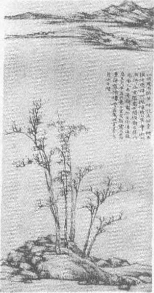 渔庄秋霁图 倪瓒 倪瓒1301—1374元代画家。字元镇,号云林,自称倪迁,自署懒瓒、吴倪瓒、云林子、云林散人,别号荆蛮民、净名居士、朱阳馆主、萧闲仙卿、幻霞生等。无锡人。出身于殷富家庭,自幼生活安逸,饱览经史。工诗文,擅书法,熟音律,避居太湖,筑“清閟阁”,蓄藏图书文物,并为吟诗作画之所。信禅宗,后入“全真教”。性狷介,有洁癖,一生避政无官,浪游江湖,作诗绘画,实为文人画家之范。善水墨山水,多取材太湖景色,小山竹树平远,意境清远萧疏。用笔多侧峰,轻而松,方且整;笔路清晰,笔墨简练。尝自谓“逸笔草草,不求形似,聊以自娱耳”或曰“聊写胸中逸气”。其作品幽淡清雅,并创折带皴(参见皴),一变古法,对以后明、清文人画影响极大。为元代四(画)家之一。传世作品有《竹枝图》、《幽涧寒松图》、《梧竹秀石图》、《古木幽篁图》、《秋亭嘉树图》等存在台湾;《渔庄秋霁图》和《竹石乔柯图》(纸本水墨)藏上海博物馆。著有《云林诗集》传世。卒年74岁。 倪瓒元代书画家。1301年生,1374年去世。无锡(今属江苏)人。擅画水墨山水。与黄公望、吴镇、王蒙合称“元四家”。1354年,避战乱于太湖。1374年,回无锡。1345年作《六君子图》轴(61.9cm×33.3cm)。1350年作《松坡平远图》、《隔江山色图》轴。1351年作《松石望山图》。1352年作《水竹居图》卷。1355年作《渔庄秋霁图》轴(96cm×47cm)。1364年作《溪山图》轴。1368年作《雨后空林图》轴。1368年作《树石幽篁图》轴(60.7cm×29.3cm)。《疏林图》轴(69.8cm×58.5cm)。《幽涧寒松图》轴(59.7cm×50.4cm)。《容膝斋图》轴(74.7cm×35.5cm)。《古木幽篁图》轴(88.6cm×30cm)。《梧竹秀石图》轴(96cm×36cm)。《竹枝图》卷(34cm×76.4cm)。《琪树秋风图》轴(62cm×43.4cm)。 |