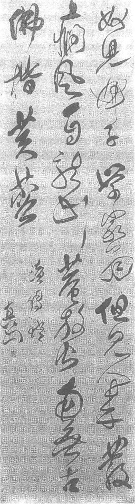 | 释义 | 傅山草书读传镫诗轴清。绫本。纵179厘米,横48.5厘米。天津市艺术博物馆藏。傅山(见《傅山草书诗轴》条目)书。此幅草书:“奴儿婢子学家翁,但见人来发痫风。一自龙山庵放火,南无古佛楷芙蓉。”下款署“读传镫真山”。计3行33字。书体流宕自如,体势连绵,提按有致,轻重适中,圆润劲健,可谓:“笔如风雨气如虹,积健为雄见此翁。”体现了傅山高度的艺术造诣。