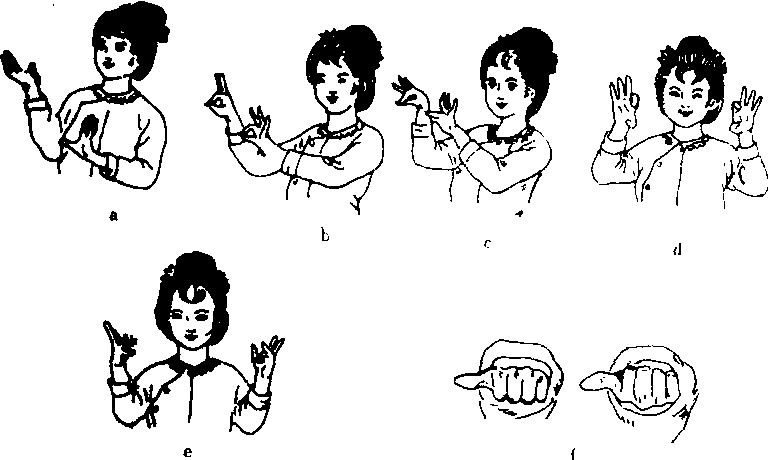 | 释义 | 傣族舞的基本手型Daizuwu de jiben shouxing掌形:四指并拢,虎口张开,拇指稍向内合,手指与手掌用力伸直,使手指向上翘。有托式掌、立式掌、提腕掌。(图a)。冠形: 食指与拇指相对,指尖相靠,形成 一个环形。其余三指伸直,象扇形张开。手型好似孔雀头 (图b)。爪形: 食指第二关节屈,拇指第一关节屈(或伸直),两指相对形成一个爪字形,其余三指伸直成扇形,手形象孔雀爪一样(图c)。嘴形:食指、拇指相对伸直,靠成尖嘴形,其余三指伸直成扇形,手形如孔雀的尖嘴(图d)。叶形:拇指伸直与食指相靠,其余四指成扇形,使手掌外沿向上翘,手形如椰子树叶状(图e)。曲掌: 四指并拢稍屈,拇指伸直,虎口张开,成掌心向上曲掌状 (图f)。