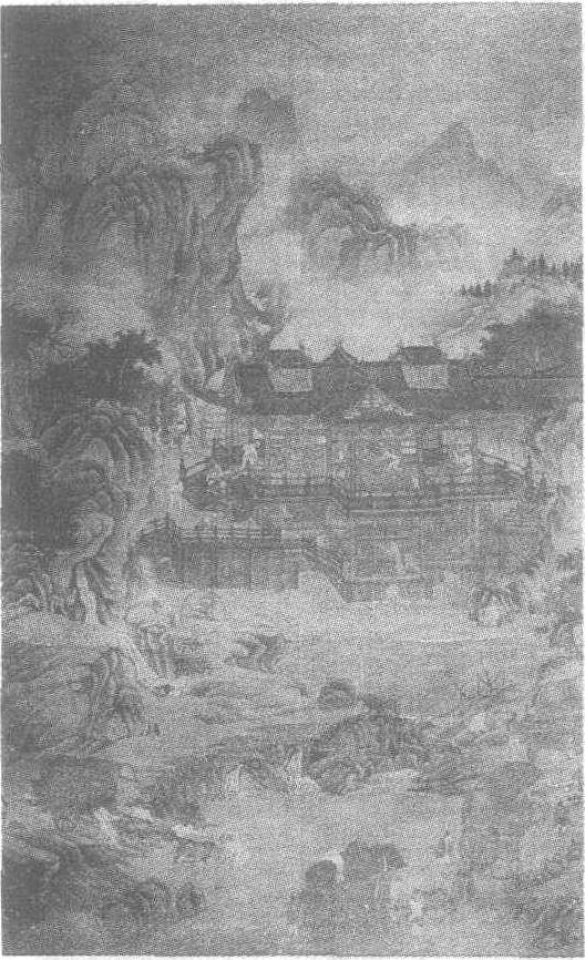 | 释义 | 元人山溪水磨图轴元。无款。绢本设色。纵154厘米,横94厘米。辽宁省博物馆藏。此图表现山谷中人们用水磨加工粮食的情景。图中山色晦冥,雾霭迷濛,巉岩危立,林木茂盛。数道山溪自蹊谷间奔涌而出,在山脚下汇聚一处,一座高大复杂的双层水磨作坊当溪而立,作坊内众多雇工正在忙碌着,有的添料,有的运粮,有的操纵水磨,调节转速,大家相互配合,工作得有条不紊。几个村童站在一旁兴致勃勃地观看。近水溪泽清浅,牛车队装载着加工好的粮食正在过河。为了防止粮车下水时速度过快而翻倒,车夫们前曳后拖,拥护着它缓缓驶下坡岸,人物的神态表情非常生动,很有生活气息。前面的车辆有的滞留河中,有的则已上岸,沿着山径继续前行,从画面中消失了。图中并没有表现出车队前进的目标,但作坊附近崎岖山路上一长一少两位僧人却将它暗示出来了。此图笔法细秀,设色古雅,山石皴擦少而晕染多。水磨作坊以界画形式描绘,极为精工,为研究元代的水利设施的科学水平和社会经济,特别是寺院经济面貌提供了宝贵的形象资料。图中无作者款印,但时代风貌十分明显,确系元代作品。