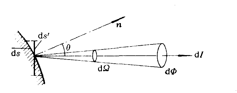 | 释义 | 光亮度guangliangdu在某方向上单位投影面积的面光源沿该方向的发光强度。又称发光率,用符号L表示。面光源上小面元的面积为ds,某一方向与面元法线的夹角为θ,面元沿这个方向的投影面积为ds′、ds′=ds·cosθ,面元沿这个方向的发光强度为dI,则光源在该方向上的光亮度为 L=dI/(cosθ·ds) 若面元沿这个方向上立体角元dΩ内发出的光通量为dᵠ,因此dI=dФ/dΩ,光亮度又可写为L=dФ/(dΩ·ds·cosθ) 在国际单位制中,光亮度的单位是坎德拉/米2(cd/m2),又称尼特(nit)。常用的单位还有熙提(sb)和朗伯(L),它们之间的换算关系为1熙提=104尼特,1朗伯=1/π熙提=104/π尼特。光亮度一般随小面元的位置而变,也与观察方向θ有关。若面元沿各方向的单位立体角元向发出的光通量dФ总与cosθ成正比,即面元各方向上的光亮度相等,称这种面光源为余弦辐射体。与光出射度M一样,光亮度也是描述面光源发光强弱的物理量,两者之间的关系为 M=∫LcosθdΩ 积分范围为面元一侧的空间,相应的立体角为2π。当面光源为余弦辐射体时,M=πL。光亮度也适用于本身不发光而只是反射和散射光的面“光源”。 一些实际光源的光亮度