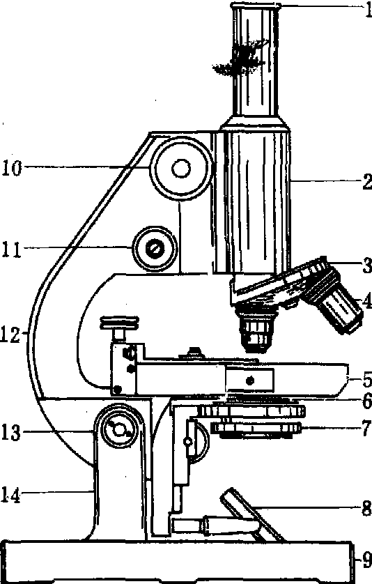 光学系统 包物镜 靠近被观察物体(标本),故又称接物镜。将被观察物体进行第一次放大,是决定显微镜分辨力的关键性部件。物镜的金属外壳上,注有主要性能指标,如“10/0.25,160/0.17”,10示物镜放大倍数,0.25示镜口率,160为镜筒长度(mm),0.17为盖玻片厚度(mm)。 目镜 靠近观察者眼睛,又称接目镜。能将物镜所成的像进一步放大,但不能增加分辨力。目镜的放大倍数通常为4~16倍,在其外壳上分别注有4×,8×,10×,16×等字样。目镜直径有标准型和广视野型两种。最常用的目镜有: 惠更斯目镜、兰姆斯登目镜、补偿目镜、平场目镜和摄影目镜等。 照明装置 包括聚光器、照明光源和滤光器等。聚光器位于标本下方的聚光器架上,由聚光镜和可变光阑组成,其作用相当于一个凸透镜,使光线射入整个物镜的孔径角。聚光镜的聚光焦点,一般在上端透镜平面上方约1.25mm处,以适应载玻片标准厚度(1.1±0.04mm)。聚光镜的主要参数为镜口率,使用时应与物镜的镜口率匹配。可变光阑位于聚光镜下方,亦称虹彩光圈。由十几块金属薄片组成,可以随意调节其开孔大小,使聚光镜的镜口率适应于物镜的镜口率。通常使用时,应使聚光镜的镜口率略小于物镜的镜口率,以获得较大的反差。 照明光源可分为内、外两种类型: ❶外光源指天然日光、室内灯光和专门的显微镜灯; ❷内光源指在显微镜镜座上装备的低压卤素灯泡 (特殊条件下用高压汞灯或高压氙灯),可依靠改变电压来调节照明强度。外光源利用镜座下的反射镜对光线聚焦,并将光线传送到标本上。内光源则由多个反射镜和透镜组成的聚焦系统。 滤光器位于聚光器和光源之间,为圆形有色玻片或毛玻璃片,用于消除不需要的色光或减弱光线强度,求得均匀一致。 机械系统 包括镜座、镜臂、载物台、镜筒、物镜转换器和调焦装置等。 镜座 又称镜脚。是显微镜的基座,用于支持整个镜体。有的镜座内装有照明光源和反射器。 镜臂 有的固定,有的在靠镜座后侧有倾斜关节,使其可以倾斜,利于观察。镜臂用于支持镜筒、载物台、聚光器和调焦装置等。 载物台 又称镜台或标本台,用于支持标本,附着于镜臂下部,中央有一通光孔,台上装有标本片夹或带有标尺的标本移动器。载物台有固定式和移动式两种。固定式不能移动,要靠手或移动器移动标本;移动式可前后左右移动,因载物台与标本移动器连成一体。 镜筒 为金属圆筒,附着于镜臂上部,上端放置目镜,下端连接物镜转换器。为避免光线反射,筒内壁喷有黑色无光漆。目镜与物镜在同一直线上的为直式; 斜式的目镜中轴与镜筒中轴成45°或60°角,光线靠折转处的棱镜转折45°或60°后仍落在目镜光轴上。安装目镜的镜筒一般有单筒和双筒之分,双筒目镜靠棱镜使光线折转和分光。从镜筒上缘到物镜转换器螺旋口下缘的距离称机械筒长。机械筒长不能变更的叫固定式镜筒,能变更的叫调节式镜筒,后者在筒上附有刻度,调节范围可在155~250mm之间。只有采用厂家所规定的机械筒长,才能发挥光学系统的最佳性能,否则会增大像差和色差。 物镜转换器 固定在镜筒下端,可装置几只不同放大倍数的物镜,可以左右转动,以便更换所需放大倍数的物镜。 调焦装置 分粗调节螺旋和细调节螺旋。用于调节物镜与标本之间的距离,以获得清晰物像。传统的调焦装置为使镜筒上下垂直移动进行调焦,粗细调节螺旋位于上下两个不同位置。近年来,也有一些显微镜则是通过载物台的上下移动进行调焦,粗细调节螺旋组成一个同轴结构位于一处。