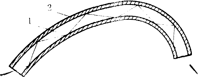 | 释义 | 光学纤维guangxue xianwei能传导光线的一种透明媒质纤维。又称光导纤维。简称光纤。美国的哈塞尔于1929年用石英最先制成了光学纤维,当时这种纤维质量虽然尚差,但在短距离内真正实现了光线和图像的传导。光学纤维传光,是利用全反射原理。光线从光学纤维的一端入射,经多次全反射后从另一端出射。光学纤维很细,其直径一般从几微米至几十微米,有的甚至小于1微米。这样细的纤维即使有些弯曲,一般也不会对光的传导有大的影响。光在光学纤维内传播的路径如下图所示。实用的光学纤维分内外两层,内层细丝为芯料1,折射率较高,约1.8;外面的包层为皮料2,折射率较低,约1.4。射入内层的光线入射到两层材料的分界面,若入射角大于临界角,则经多次全反射,光可从纤维的一端传播到另一端;而入射角小于临界角的那些光线不能产生全反射,光将因折入包层而逐渐损失,不能继续在纤维内传播。成千上万根光学纤维紧缚在一起构成光学纤维束。光学纤维束有的用于传送光能,称为传光束;有的还可用于传送图像,称为传像束。传像束要求每根光学纤维在两端的位置要有严格的对应关系。