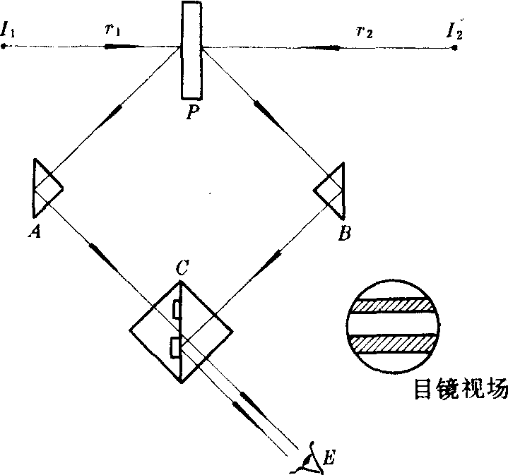 | 释义 | 光度计guangduji测量可见光辐射量的仪器。测量发光强度的有陆末-布洛洪光度计、本生光度计、浦耳弗里许光度计等;测量光通量的有球形光度计、分布光度计、流明计等,测量光亮度的有亮度计,测量光照度的有照度计、勒克司计、曝光表等。光度计提供光辐射能的各种测量,有着广泛的应用。例如,对光源的光谱特性、发光强度的方向性和总光通量的测量,可为照明光源的设计、生产和使用提供依据;对各种材料的光辐射特性的测量,是遥感技术所必需的;对光电池、光电管、各种光敏和光热元件的光谱灵敏度和响应线性的测量,为它们在测量仪器、换能装置和自动控制系统中的使用提供依据。 I2=I1r22/r21。 人眼对相邻面的亮度是否相等有敏锐的判断能力。陆末-布洛洪光度计是一种目视法光度计,可测量发光强度。如图所示,P为白色漫反射屏,如石膏板或涂敷氧化镁的板,发光强度分别为I1和I2的两个光源射向P的光,被分别漫反射到全反射棱镜(或反射镜)A和B,全反射后进入C。C由两块全反射棱镜密接而成,其中一块(图中左边)的斜面上有几个刻槽。从B反射的光线,射到有刻槽处的光线被全反射,到达目镜E;而从A反射的光线,射到密接处的光线可透射到E。于是,人眼从目镜的视场中就可看到图中所示的照度分布,其中斜纹部分为从B来的反射光所产生的照度,其余部分为A来的透射光所产生的照度。若调节r1(或r2),使光照度相等,整个视场一片均匀照度,看不到分界线,此时即可用公式算出待测光源的发光强度。