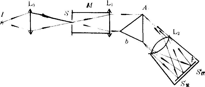 | 释义 | 光谱仪器guangpu yiqi将复色光分解为光谱,并对其进行观察和记录的仪器。它是进行光谱学研究的基本工具。其基本结构如图示:光源照射狭缝S,S位于准直物镜L1的焦面上,于是有平行光束射至色散元件(这里以棱镜为代表),光被分解为光谱并最后聚焦于成像镜L2的焦面F上。探测部件可在F面上接收信号,并送至记录系统进行处理。光谱仪器的主要部件有四个:❶光源。种类很多,如火焰、电弧、电火花、各种放电管等。