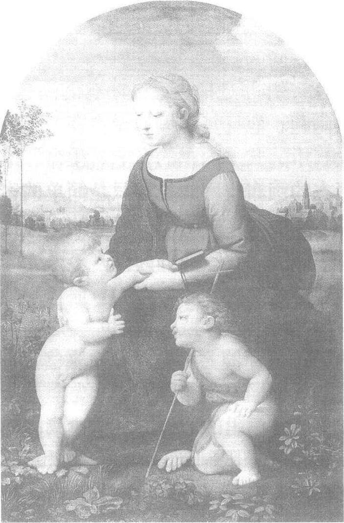 美丽的女园丁 克利 从造形表现方面看,克利也和拉斐尔完全相反,他的作品有 一种极抽象化的形式。但构图又与拉斐尔的大体相同,当然,不知道的人看了这两幅画,一定想不到会是出自同一主题吧。那么克利这么画的用意何在呢?