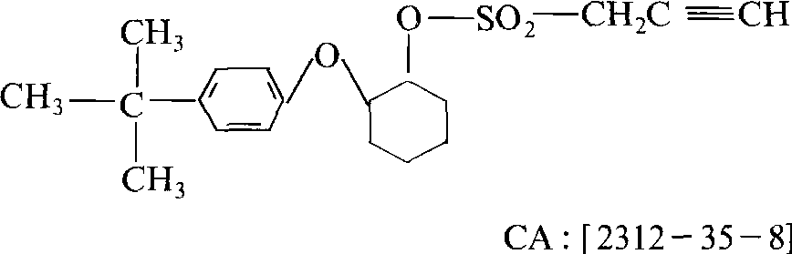 性能 原药为深褐色粘性液体,密度1.085~1.115,闪点28℃。20℃时蒸气压为3.99×102帕。25℃水中溶解度为0.5毫克/升,不溶于强酸强碱,易溶于大多数有机溶剂。易燃。碱性条件下较易分解。低毒,原药对大鼠急性口服LD50为2200毫克/千克,对家兔急性经皮LD50为10000毫克/千克。对家兔眼睛和皮肤有严重刺激作用。慢性毒性试验确定对大鼠和狗无作用剂量为900毫克/千克。96小时TLm值对蓝鳃翻车鱼为0.167毫克/升,对虹鳟为0.118毫克/升。对蜜蜂低毒,急性LD50为18.13毫克/只。克螨特有胃毒和触杀作用,无内吸作用,对植食性成螨和若螨活性高。持效期30天左右。能防治对其他类杀螨剂产生了抗药性的螨类。 应用 制剂有73%乳油、30%可湿性粉剂、4%粉剂。243~365毫克/升可防治果树、蔬菜等许多作物的害螨,450~750克/公顷剂量可防治棉叶螨。天气炎热而潮湿对喷施此药可能使幼嫩枝叶出现轻微药害,叶片皱曲或起斑点,对作物生长没有影响。为避免药害,25厘米以下棉株或嫩梢期柑橘喷施浓度应尽量低些。可与许多其他农药混用,但不能与波尔多液等碱性农药混用。 克螨特propargite又称丙炔螨特。有机硫广谱杀螨剂。化学名称:2-(4-特丁基苯氧基)环己基丙-2-炔基亚硫酸酯。化学结构式如下。原药为黑色黏性液体,密度1.085~1.115,20℃时蒸气压为400 Pa。几乎不溶于水,易溶于多种有机溶剂,遇强酸、强碱分解,闪点28℃,易燃。具有触杀和胃毒作用,无内吸和渗透作用。对成、若螨有效,对卵效果差。气温20℃以上药效可提高。用于棉花、蔬菜、苹果、柑橘、茶、花卉等多种作物的害螨。对人、畜低毒,大鼠急性口服LD502 200 mg/kg,兔急性经皮LD503 476 mg/kg,大鼠急性吸入LC50为2.5 mg/L。对眼、皮肤有刺激作用。对鱼类高毒,对蜜蜂低毒。