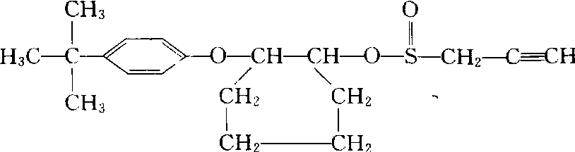 | 释义 | 克螨特propargite低毒高效、胃毒和触杀型丙炔基亚硫酸酯杀螨剂,商品名丙炔螨特、Comite。化学结构式: