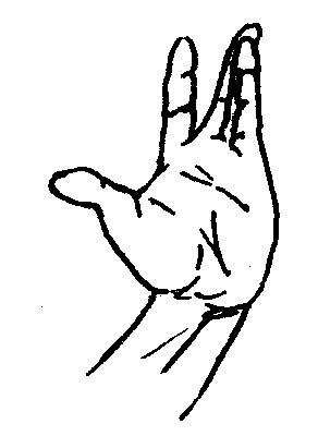 是指八卦掌练习时手的姿势。主要的手型为龙爪掌:五指分开,伸直;拇指外展,虎口撑圆;蹋腕;掌外缘向前,掌心空含。(图2—4—70)另外,八卦掌的其它手型还有牛舌掌、并掌等。