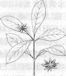 | 释义 | 八角茴香truestar anisetreeIllicium verum Hook.f.,又称八角。木兰科(或八角科),八角亚科,八角属。常绿小乔木。是亚洲东南部亚热带地区特有树种。分布于福建、广东、广西、贵州、海南、云南等省区。多生于温暖湿润山谷中。多单叶互生,亚革质,有透明油点,下面疏生柔毛,椭圆形或椭圆状披针形,叶端急尖,基部楔形,全缘。花两性,单生叶腋;花被片7~12枚,数轮排列,内轮呈红色;雄蕊11~20枚,1~2轮;心皮6~12枚,通常8枚,1轮排列。聚合蓇葖果八角状,红棕色,蓇葖先端钝尖。八角茴香为阴性树种,适于向阴山坡林下排水良好的疏松砂壤土生长。种子繁殖,霜降播种育苗,1~2年生苗定植,8~15年开始结实,结实盛期为30~60年。果为芳香、健胃、兴奋、驱风、祛痰药和矫味剂,有温中散寒、理气止痛功效,又为工业品的香料。果和叶可提芳香油。种子可榨油。