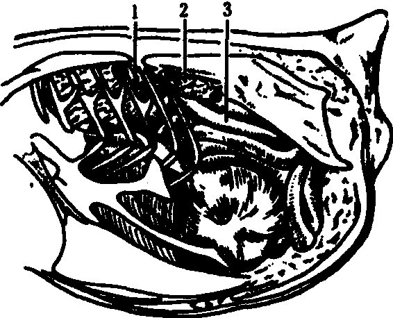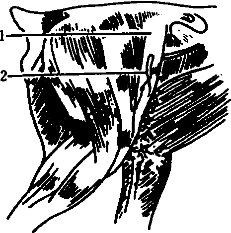 图2 阉鸡器械 手术方法 切口一般选择在公鸡肷部或倒数第一、二肋骨间隙, 因该处皮肤薄而松弛, 容易移动。切口高低, 以髋关节与肋骨垂直交叉点为准。较大的公鸡, 可肷部切口;较小的公鸡,可肋间切口。切口时,应避免损伤缝匠肌和腰神经(图3)。