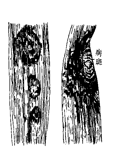 分布和为害 中国兰花产地及引种地区均有发生。1983年广州、福州、昆明、厦门发生严重。症状有二类: 一类侵染幼苗嫩叶,多先从叶基部开始,扩大后形成轮纹斑,严重时心叶腐烂; 另一类侵染老叶,在叶面形成圆形、椭圆形或半圆形(在叶缘发生时)的红褐色斑块,发生多时呈云纹状。后期病斑为褐色到灰白色,边缘黑褐色,周围有褪绿晕圈,上轮生小黑点状的分生孢子盘,最后叶片变褐枯萎。空气潮湿时病部产生小点状粉红色胶质物(病菌粘分生孢子团)。