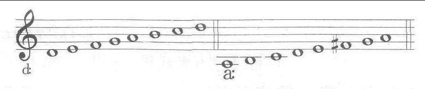 其中,利底亚调式、混合利底亚调式和伊奥利亚调式之主音上构成的三和弦为大三和弦,具有明朗的特性;多利亚调式、弗里几亚调式和艾奥利亚调式之主音上构成的三和弦为小三和弦,具有暗淡的特性。到17世纪末才最后确定只用两种现代调式,即大小调式,其中大调式与伊奥利亚调式的音程结构相同,小调式是利底亚调式与艾奥利亚调式的结合,其七度音要求升高半音。 |
