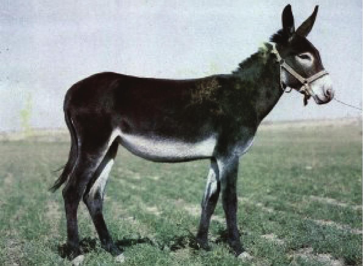 关中驴 关中驴西汉时期由西域引进的役用畜种。经长期驯化,现已成为我国大型驴的优良品种之一,今关中的兴平、武功、乾县、礼泉等为主要产地。其性温驯而活泼。被毛多黑色(亦有栗、灰色)。黑色驴口、鼻、眼圈及腹下部白色。体格高大,结构良好,头颈高举,关节强大,蹄质坚实。公驴体重约350公斤,母驴300公斤。西汉时,关中即以驴驾挽或驮载。据《后汉书·五行志》, 汉灵帝曾在宫中西园驾四头白驴,亲自操辔,驰驱周旋,以致公卿贵戚,转相仿效,并引起朝野议论。当时有:“夫驴……野人(贬称普通百姓)之所用耳, 何有帝王君子而骖服之乎?”魏太武帝北征,亦曾征发民驴运粮,派至雍州的公孙轨则 “令驴主皆加绢一匹,乃与受之,坐征还”。北周武帝伐突厥, 亦曾在关中征发公私驴、马。 关中驴我国著名驴种之一。主要分布在关中地区各县,尤以蒲城、合阳、大荔、澄城等县质量好、数量多。外型特征:粉鼻,亮眼,白肚皮;多为黑色,少数栗青;毛密而短,头颈高扬,耳大直立,颈宽厚,胸宽广,四肢强健有力,行动灵敏;体格高大,结构匀称。种田与役用价值都很高,能载善驮,是山区和交通不便地区的理想交通工具。全省现有11万头,对外可提供一定数量的商品驴。 |