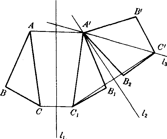图2 在对称变换下,对称轴上的点都是对称变换的不动点,对称轴及通过每对对称点的直线都是对称变换下的不动直线. |