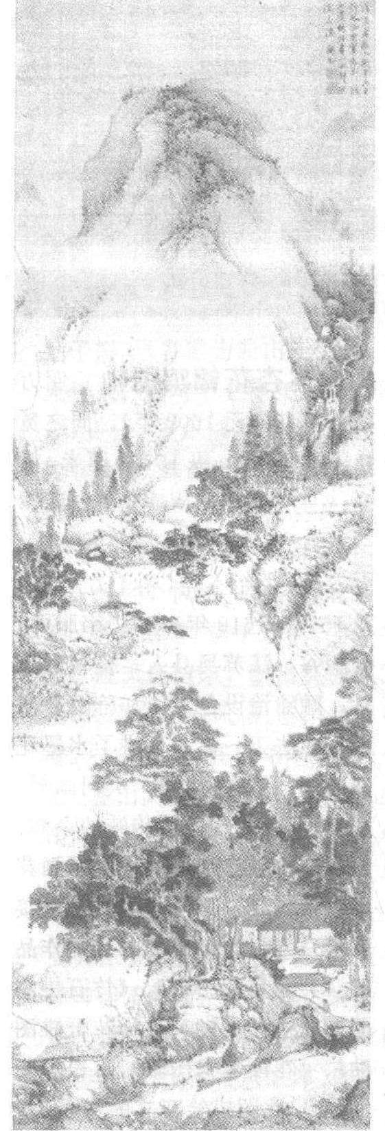 | 释义 | 关思松风斜照图轴明。关思绘。绢本设色。纵158.7厘米,横50.5厘米。江苏省南京博物院藏。关思,生卒年不详(约公元十六、七世纪),字九思,一作何思,更字仲通,号虚白,浙江潮州人。擅山水,远宗关仝、荆浩,近及黄公望、王蒙,并有所创新,风格清明。他是吴派名家之一,与宋旭齐名,画名重海内。此外,他还能诗善书,笔兼四体。传世作品有《松溪渔笛图轴》、《山水图轴》等。此幅表现的是笼罩在金色的阳光中的夏日山乡景致:夕阳里,远处雄浑的山峦间,云蒸霞蔚,林木苍郁,泉水跌荡奔流。近处平湖如镜,绿树葱茏。两岸溪边,屋舍遥遥相对,古道幽转绵长,村口、平桥分别有人踏着落日归来。晚霞中的远岫近乡,显得格外安谧、宁静。画的右上角,有自题七绝一首“清斋虚敝小阑干,六月松风洒面寒。步到溪边桥外看,一山斜照瀑长湍。关思。”钤白文〈关思之印〉、〈何思〉二方印。此图设色高古雅逸,以披麻皴画山石,双勾画松,既似吴门派画风,又有自己的独创。