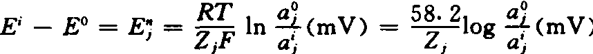 式中 Ei为膜内(细胞内)的电势;E0为膜外(细胞外)的电势;Enj为离子j的电势;a0j为膜外溶液中离子j的活度(活度a与浓度c的关系为a=fc,f为活度系数,即溶液的实际浓度除有效浓度的商,在稀溶液中f≈1,a≈c);aij为膜内溶液中离子j的活度;R为气体常数;T为绝对温度;Zj为离子j的净电荷,如指阴离子,前面加负号。 可用微电极测定某种离子在膜内外的电势梯度及膜内外的离子浓度,将测定值代入楞斯特方程式,求出E的计算值。如以Ecal表计算的电势值,Em表测定的电势值,Ed表Em-Ecal的差,则 Em-Ecal=Ed Ed为吸收离子的动力(driving force)。对阳离子而言,当Ed为负值时表示被动吸收,Ed为正值时表示主动吸收;阴离子则反之,Ed为负值时表主动吸收,为正值时表被动吸收。 测定丽藻属(Nitella)植物细胞内外的离子浓度及电势差结果如下表。丽藻为大细胞的海藻,较便于测定。如用整株植物研究就颇为困难,因为植物先端分生组织是根吸收的离子的很强的库,情况远较复杂。