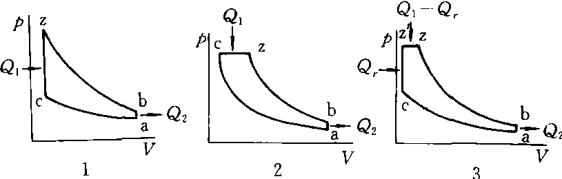内燃机理想循环 1. 等容加热循环 2. 等压加热循环 3. 混合加热循环 |