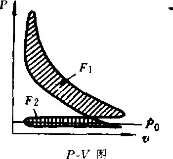 | 释义 | 内燃机示功图indicator diagram of internal combustion engine气缸内燃气压力(P)随气缸容积(V)或曲轴转角()变化的曲线,称为P-V图或P-图。由活塞位移和曲轴转角的几何关系,从一种示功图可转换为另一种示功图。示功图用电子示功器测绘。P-V图上闭合曲线占有的面积表示一个工作循环内活塞所作的功。P-V图中的正面积F1是压缩、燃烧、膨胀过程中所作的有用功,负面积F2是进气、排气过程中消耗的功(即泵损失)。一个工作循环所作的指示功Wi为此两面积之差。示功图可用来对内燃机各工作过程的完善程度进行分析研究。