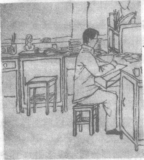 仿成人写实期属于画得好的6年级学生的毛笔速写